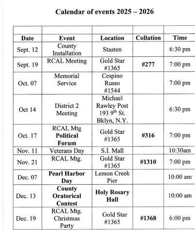 | Oratorical Contest County Oratorical Contest District | Daniel Venezia Albert Klingle |